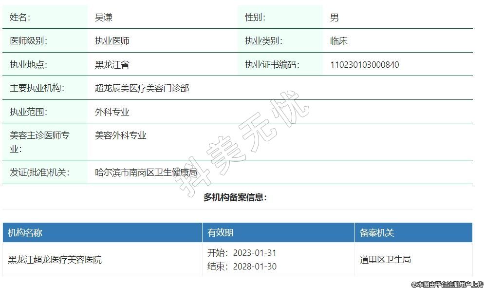 主要執(zhí)業(yè)機(jī)構(gòu):黑龍家超龍整形醫(yī)療美容醫(yī)院