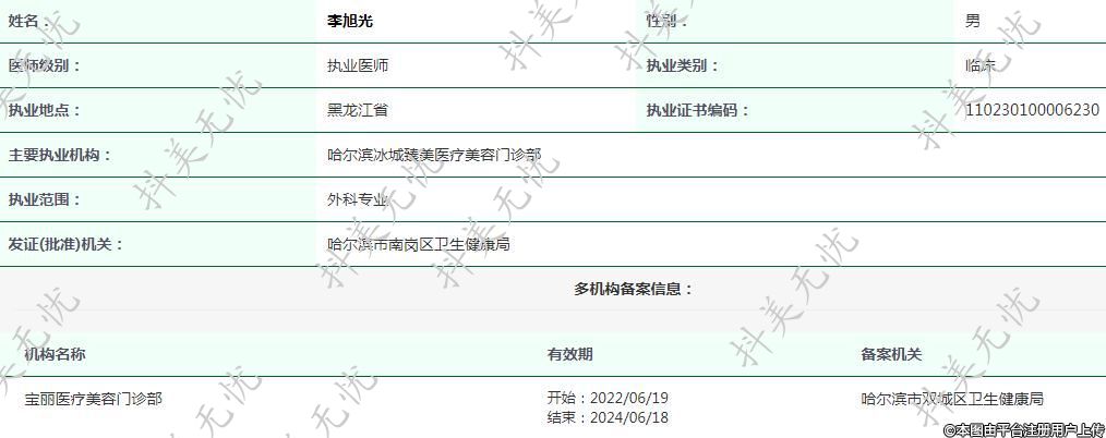 主要執(zhí)業(yè)機(jī)構(gòu):哈爾濱冰城臻美醫(yī)療美容門(mén)診部