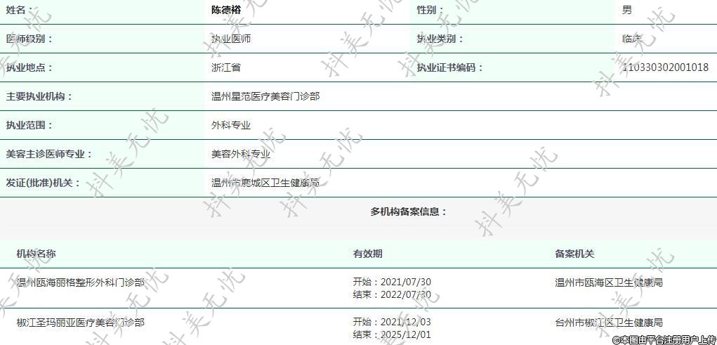 主要執(zhí)業(yè)機(jī)構(gòu):溫州星范醫(yī)療美容門診部