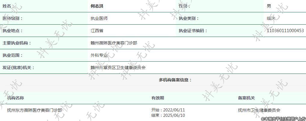 主要執(zhí)業(yè)機構:贛州薇琳醫(yī)療美容門診部