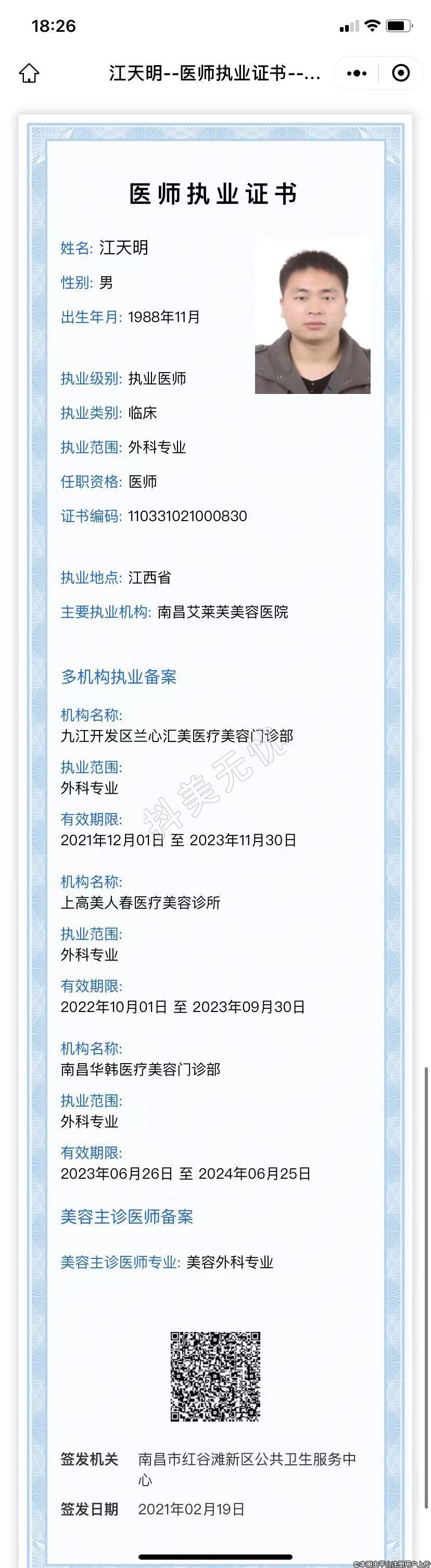 主要執(zhí)業(yè)機構: 南昌艾萊芙美容醫(yī)院