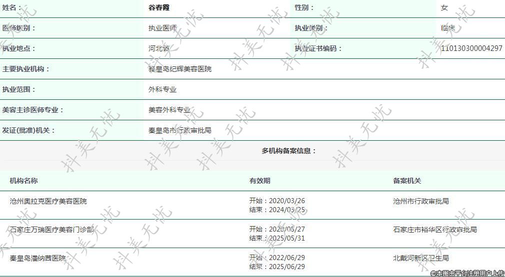 主要執(zhí)業(yè)機構(gòu):秦皇島紀輝美容醫(yī)院
