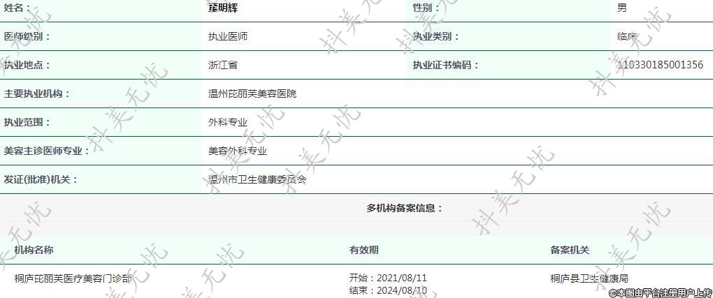 溫州芘麗芙醫(yī)療美容執(zhí)業(yè)醫(yī)師