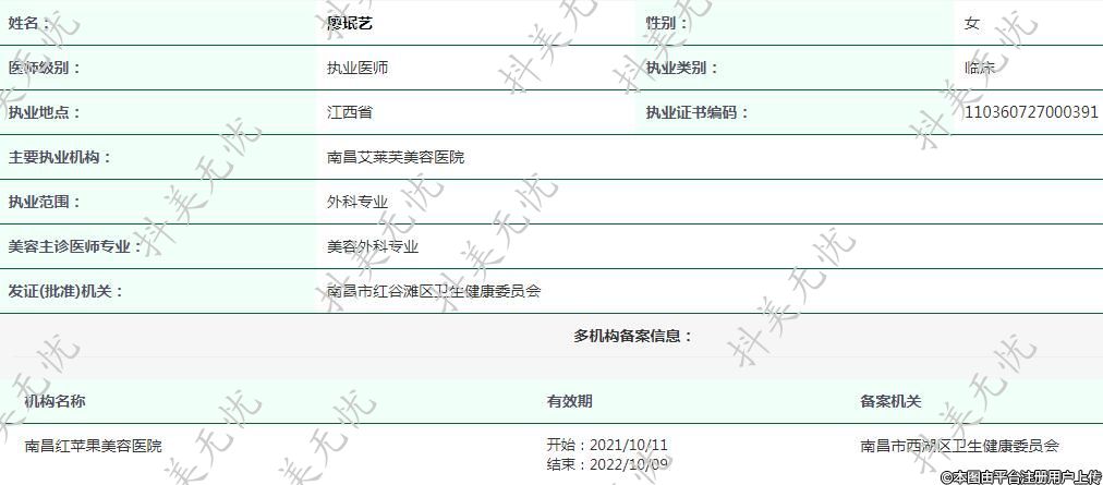 主要執(zhí)業(yè)機構(gòu):南昌艾萊芙美容醫(yī)院