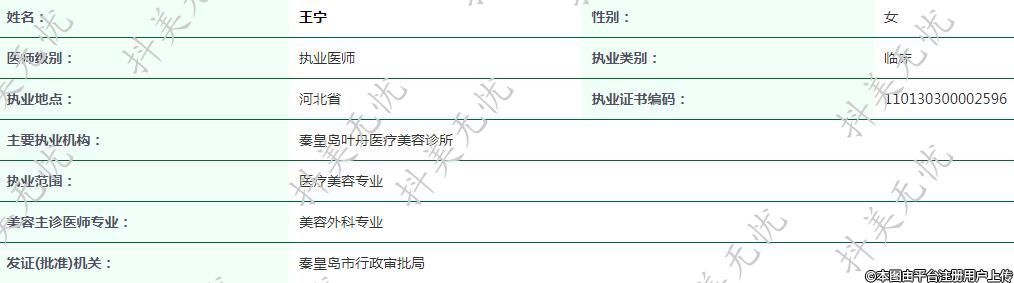 現(xiàn)任秦皇島葉舟醫(yī)療美容執(zhí)業(yè)醫(yī)師