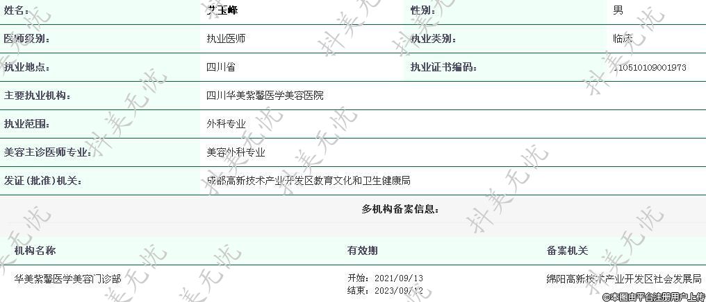 主要執(zhí)業(yè)機構(gòu):四川華美紫馨醫(yī)學(xué)美容醫(yī)院