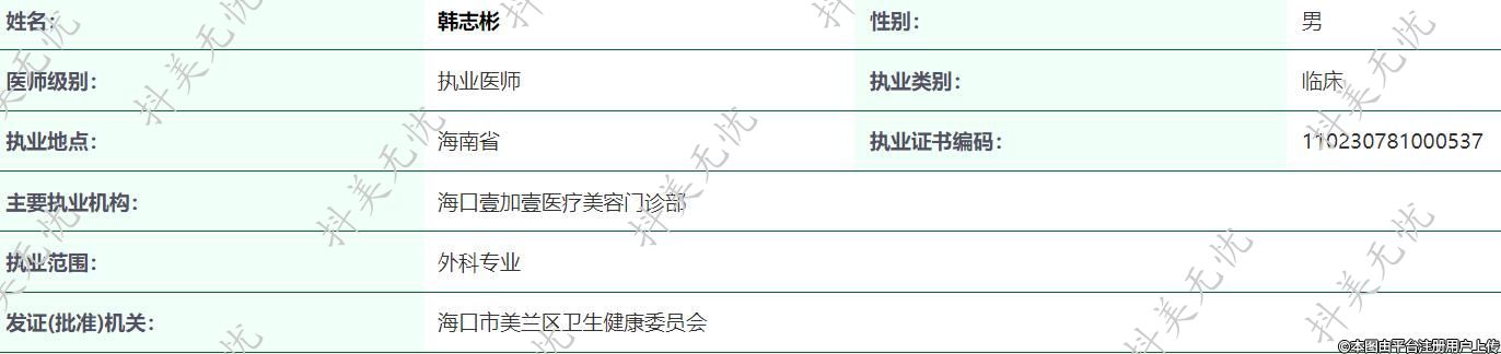 主要執(zhí)業(yè)機(jī)構(gòu):??谝技右坚t(yī)療美容門診部