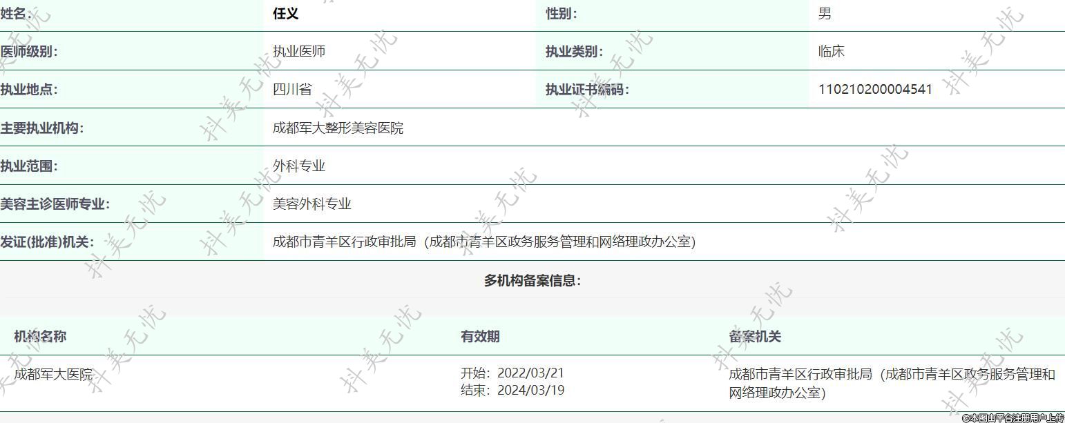 主要執(zhí)業(yè)機(jī)構(gòu):成都軍大整形美容醫(yī)院
