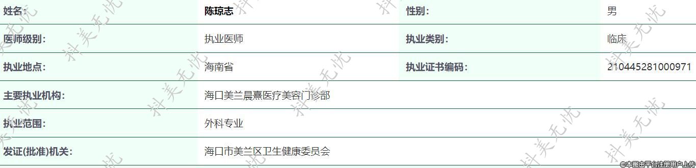 主要執(zhí)業(yè)機(jī)構(gòu):海口美蘭晨熹醫(yī)療美容門診部