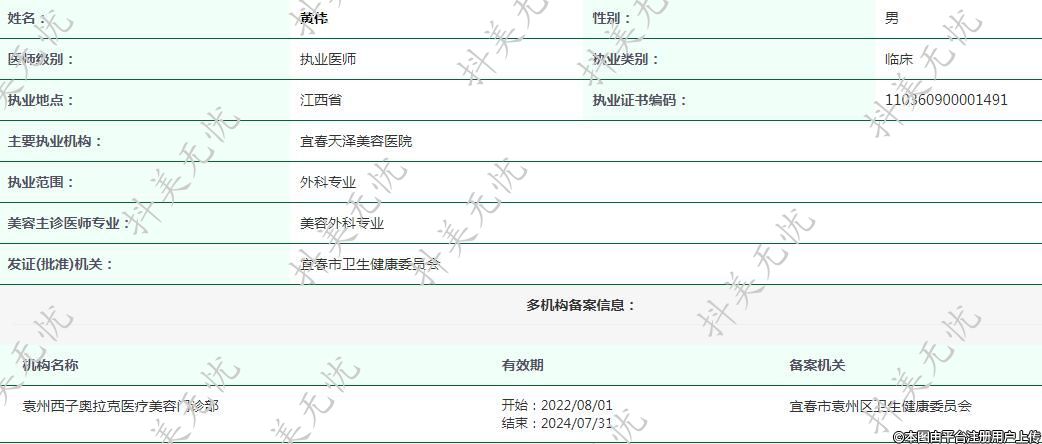 主要執(zhí)業(yè)機構(gòu):宜春天澤美容醫(yī)院