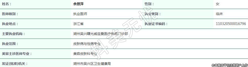 主要執(zhí)業(yè)機(jī)構(gòu):湖州吳興曙光威茲曼醫(yī)療美容門診部