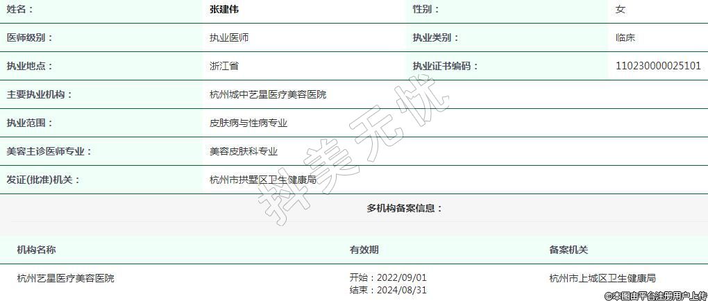 杭州藝星醫(yī)療美容執(zhí)業(yè)醫(yī)師