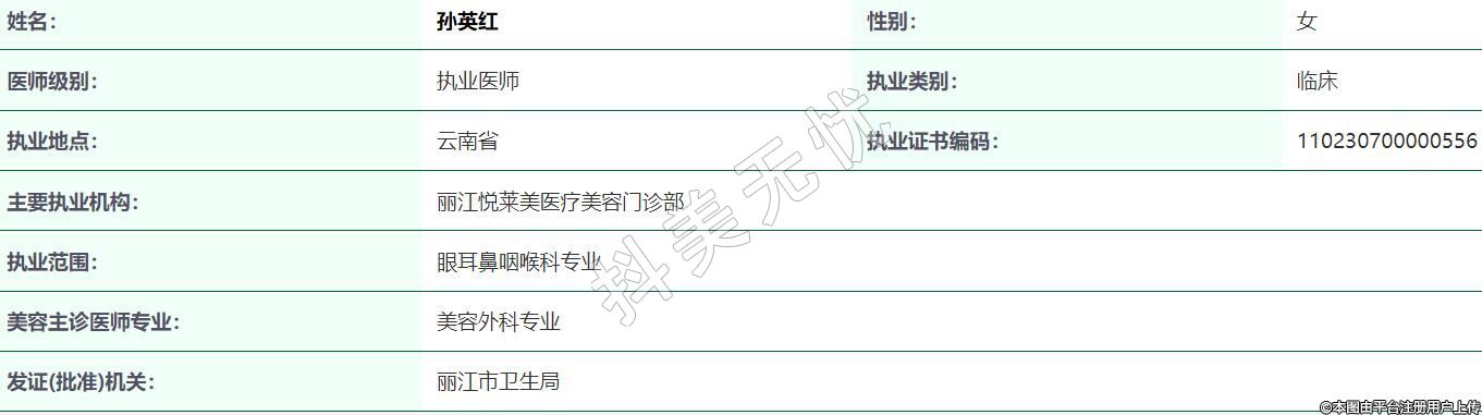 主要執(zhí)業(yè)機(jī)構(gòu):麗江悅?cè)R美醫(yī)療美容門診部