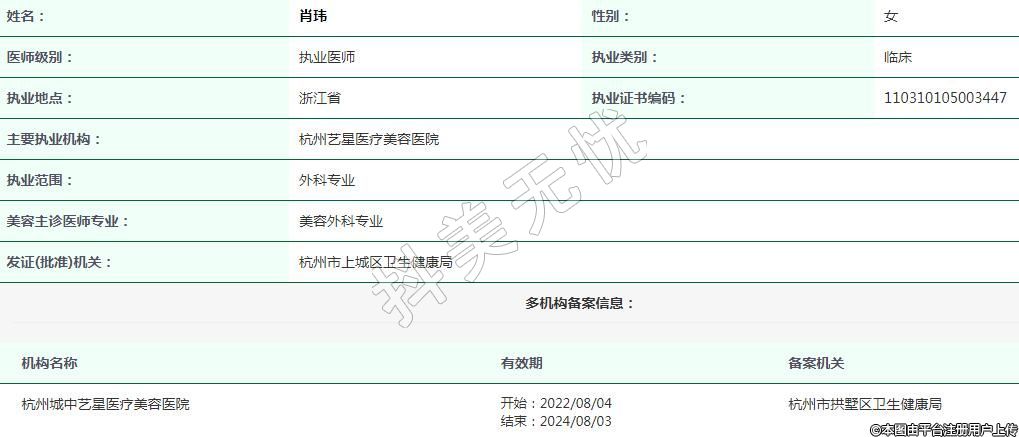 杭州藝星醫(yī)療美容執(zhí)業(yè)醫(yī)師