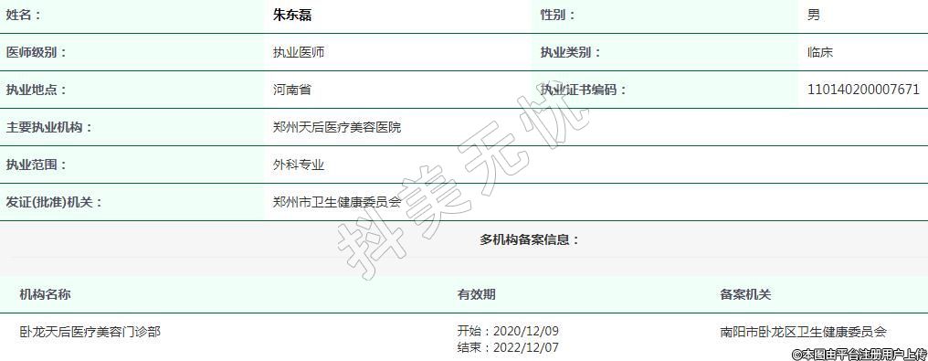 主要執(zhí)業(yè)機構(gòu):鄭州天后醫(yī)療美容醫(yī)院