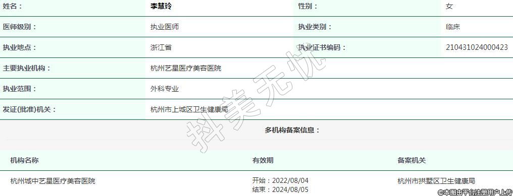 杭州藝星醫(yī)療美容執(zhí)業(yè)醫(yī)師