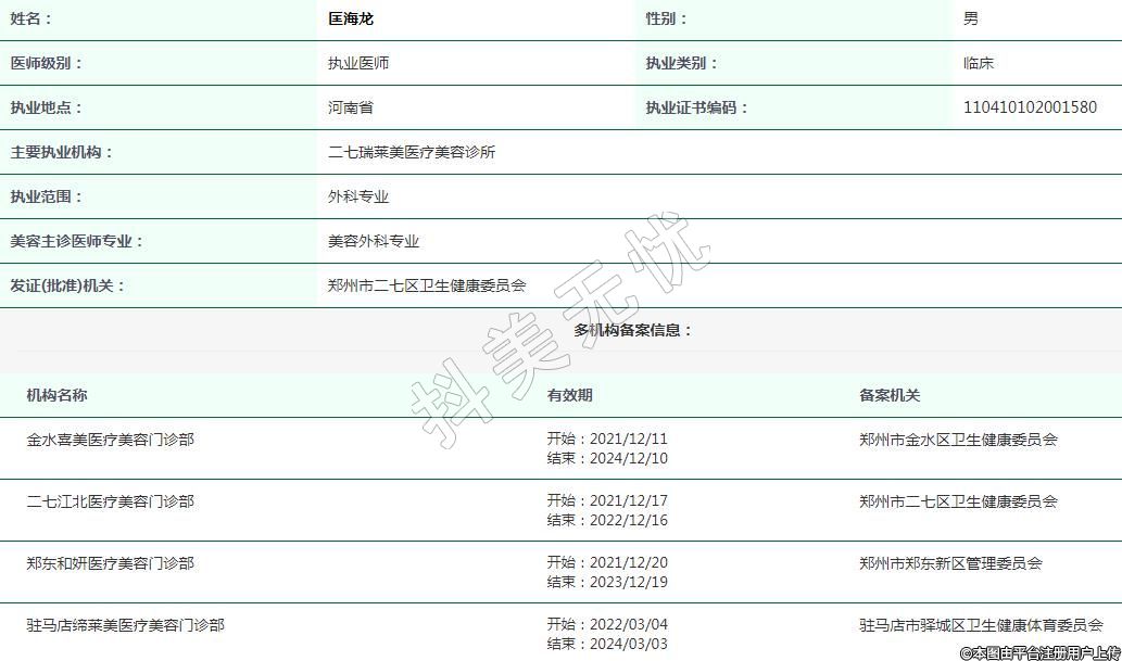駐馬店締萊美執(zhí)業(yè)醫(yī)師