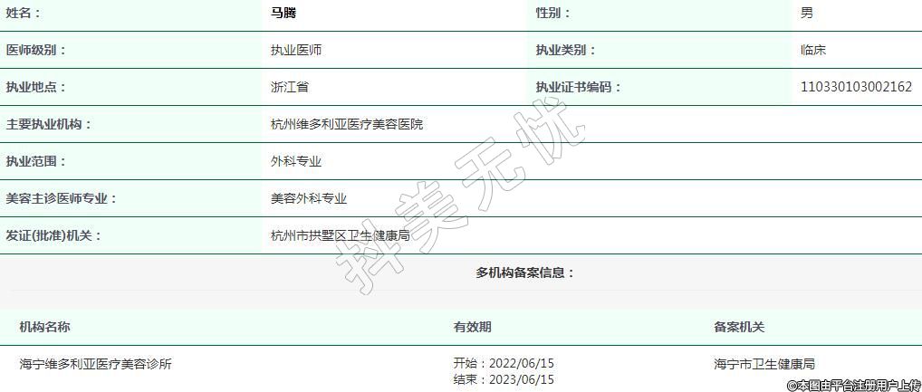 杭州維多利亞醫(yī)療美容執(zhí)業(yè)醫(yī)師