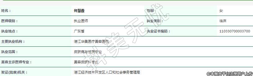 主要執(zhí)業(yè)機(jī)構(gòu):湛江華美醫(yī)療美容醫(yī)院