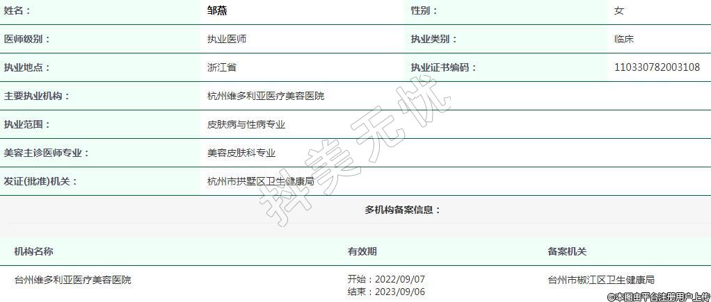 杭州維多利亞醫(yī)療美容執(zhí)業(yè)醫(yī)師