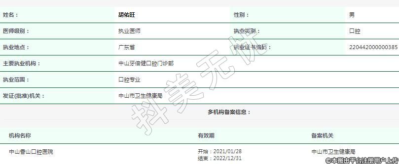 主要執(zhí)業(yè)機(jī)構(gòu):中山牙倍健口腔門(mén)診部