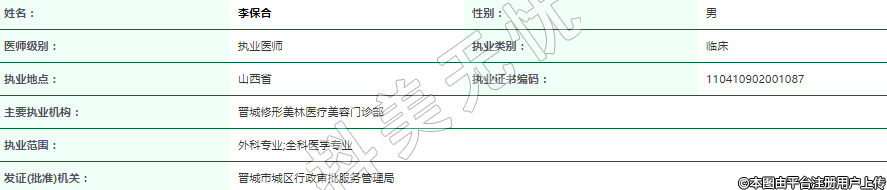 主要執(zhí)業(yè)機(jī)構(gòu):晉城修形美林醫(yī)療美容門診部