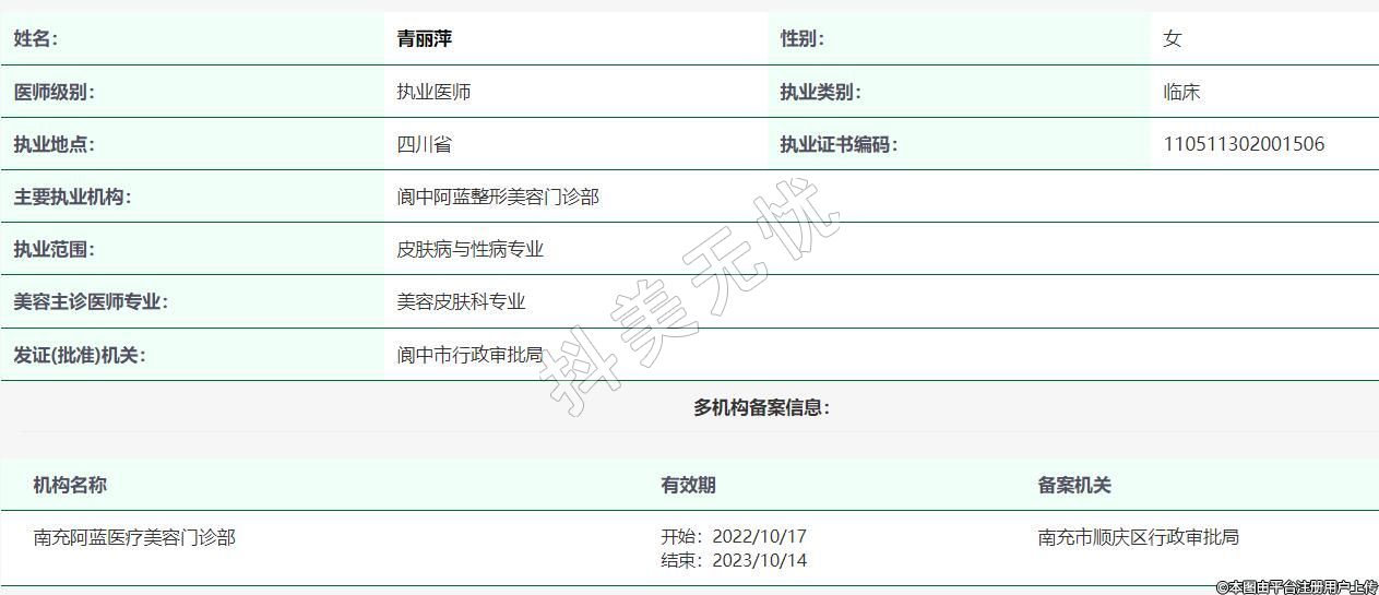 南充阿藍(lán)醫(yī)療美容門診部的醫(yī)師 -