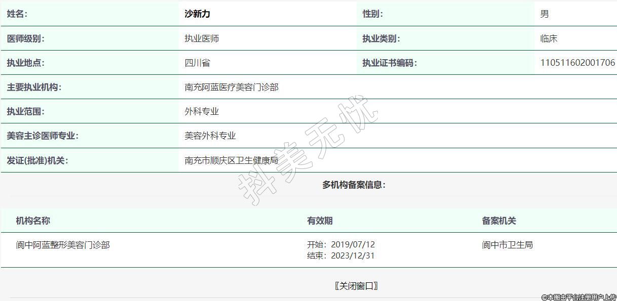 閬中阿藍(lán)整形美容門診部的醫(yī)師 -