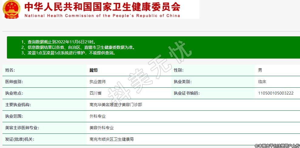 主要執(zhí)業(yè)機(jī)構(gòu):南充華美名媛醫(yī)療美容門診部