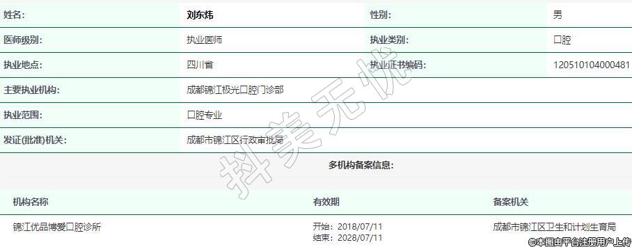 主要執(zhí)業(yè)機(jī)構(gòu):成都錦江極光口腔門診部