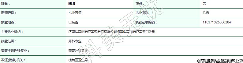 主要執(zhí)業(yè)機(jī)構(gòu):濟(jì)南俏嘉麗醫(yī)療美容醫(yī)院有限公司槐蔭俏嘉麗醫(yī)療美容門診部