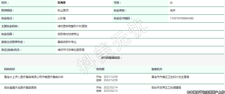 機(jī)構(gòu)名稱(chēng):青島水上伊人醫(yī)療美容有限公司市南醫(yī)療美容診所