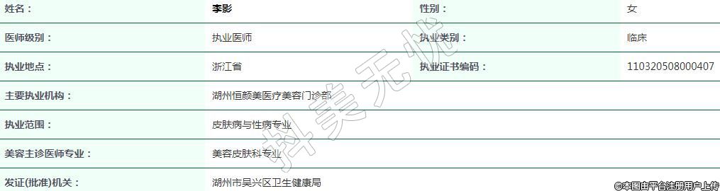 湖州恒顏美醫(yī)療美容執(zhí)業(yè)醫(yī)師
