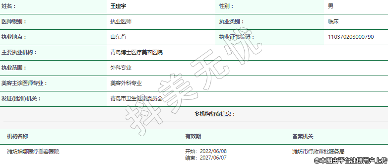 主要執(zhí)業(yè)機構:青島博士醫(yī)療美容醫(yī)院