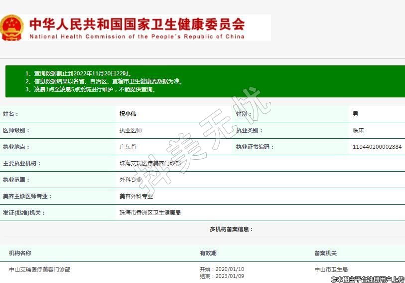 主要執(zhí)業(yè)機(jī)構(gòu):珠海艾瑞醫(yī)療美容門診部