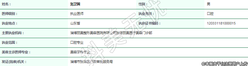 主要執(zhí)業(yè)機(jī)構(gòu):淄博麗美整形美容醫(yī)院有限公司張店麗美醫(yī)療美容門診部
