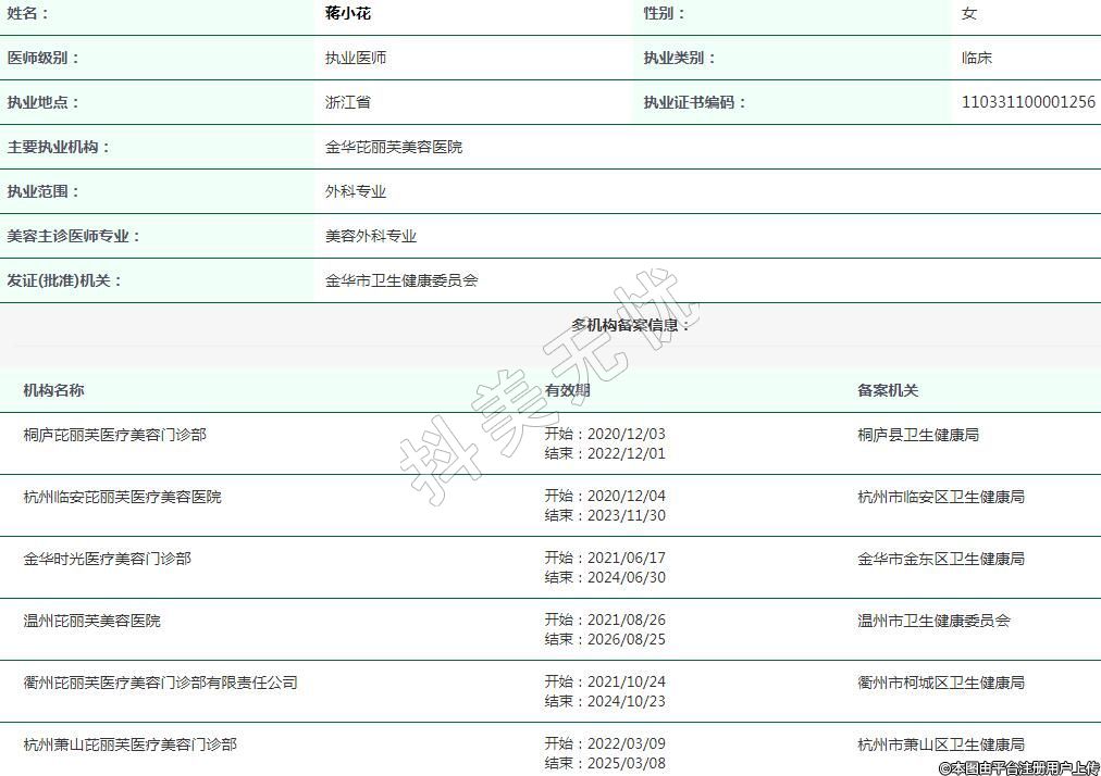 金華芘麗芙醫(yī)療美容執(zhí)業(yè)醫(yī)師