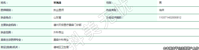 主要執(zhí)業(yè)機(jī)構(gòu):德州天宏醫(yī)療美容門(mén)診部