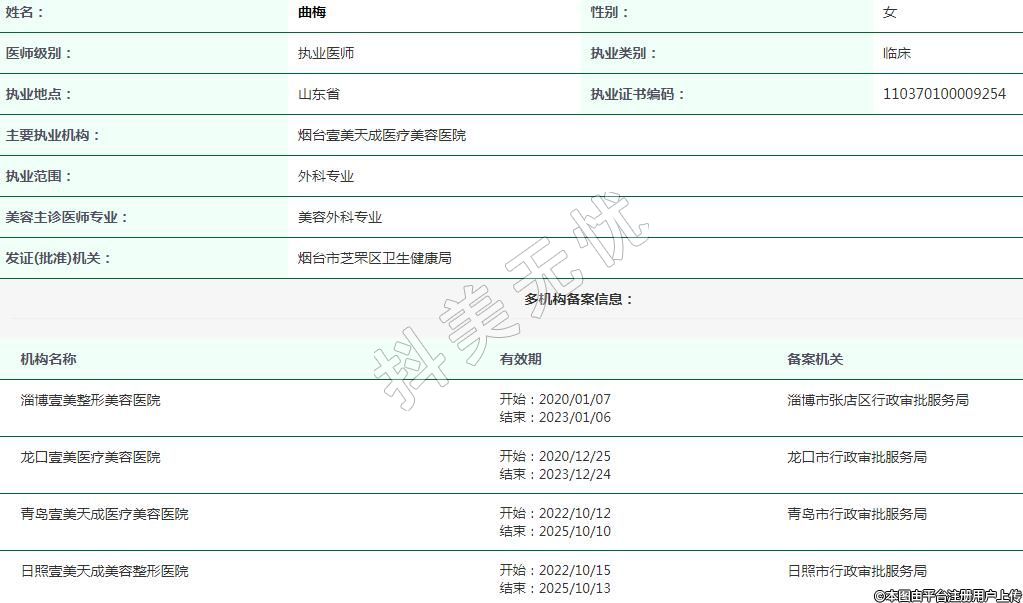 煙臺(tái)壹美天成醫(yī)療美容執(zhí)業(yè)醫(yī)師