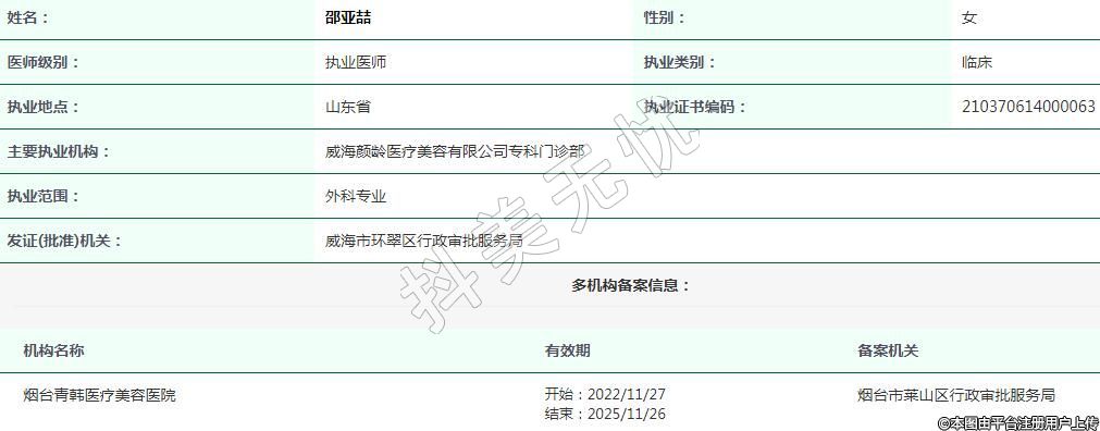 煙臺(tái)青韓醫(yī)療美容執(zhí)業(yè)醫(yī)師