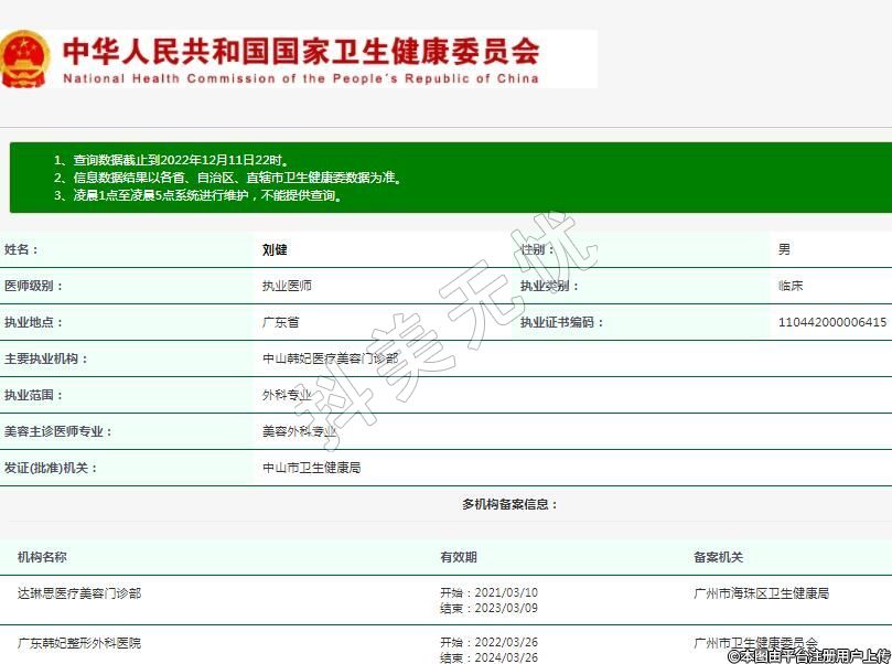 主要執(zhí)業(yè)機(jī)構(gòu):中山韓妃醫(yī)療美容門(mén)診部