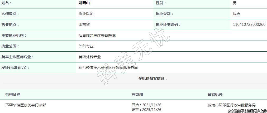煙臺(tái)曙光醫(yī)療美容執(zhí)業(yè)醫(yī)師