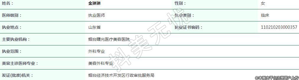 煙臺曙光醫(yī)療美容執(zhí)業(yè)醫(yī)師