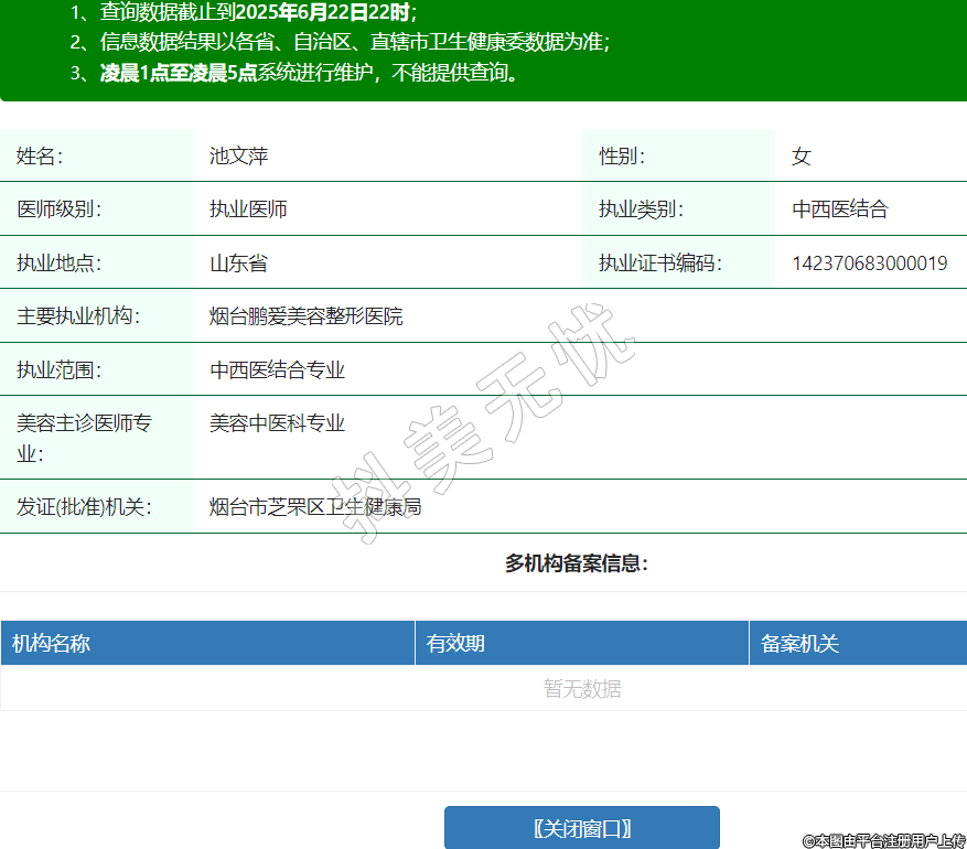 姓名:池文萍性別:女醫(yī)師級別:執(zhí)業(yè)醫(yī)師執(zhí)業(yè)類別:中西醫(yī)結(jié)合執(zhí)業(yè)地點(diǎn):山東省執(zhí)業(yè)證書編碼:142370683000019主要執(zhí)業(yè)機(jī)構(gòu):煙臺(tái)鵬愛美容整形醫(yī)院執(zhí)業(yè)范圍:中西醫(yī)結(jié)合專業(yè)美容主診醫(yī)師專業(yè):美容中醫(yī)科專業(yè)發(fā)證(批準(zhǔn))機(jī)關(guān):煙臺(tái)市芝罘區(qū)衛(wèi)生健康局 -