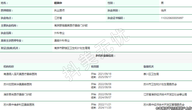 主要執(zhí)業(yè)機(jī)構(gòu):南京鼓樓美萊醫(yī)療美容門診部