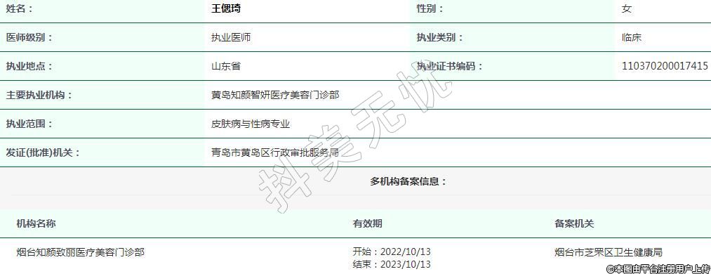 主要執(zhí)業(yè)機構:黃島知顏智妍醫(yī)療美容門診部