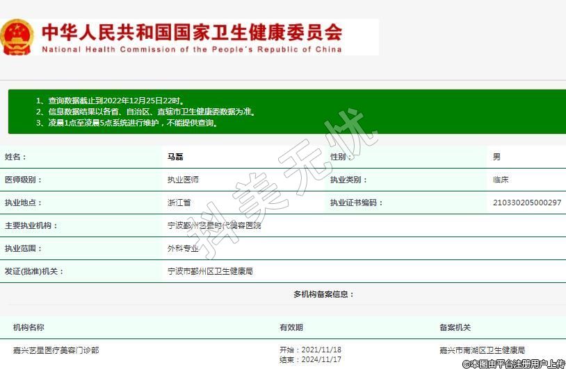 主要執(zhí)業(yè)機(jī)構(gòu):寧波鄞州藝星時代美容醫(yī)院