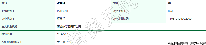 主要執(zhí)業(yè)機(jī)構(gòu):南通伯思立美容醫(yī)院