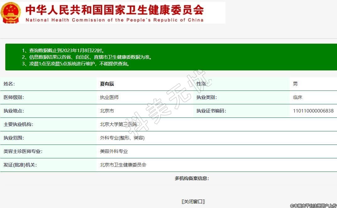 執(zhí)業(yè)范圍:外科專業(yè)(整形、美容)