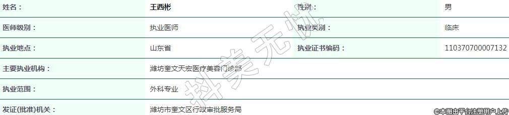主要執(zhí)業(yè)機(jī)構(gòu):濰坊奎文天宏醫(yī)療美容門診部